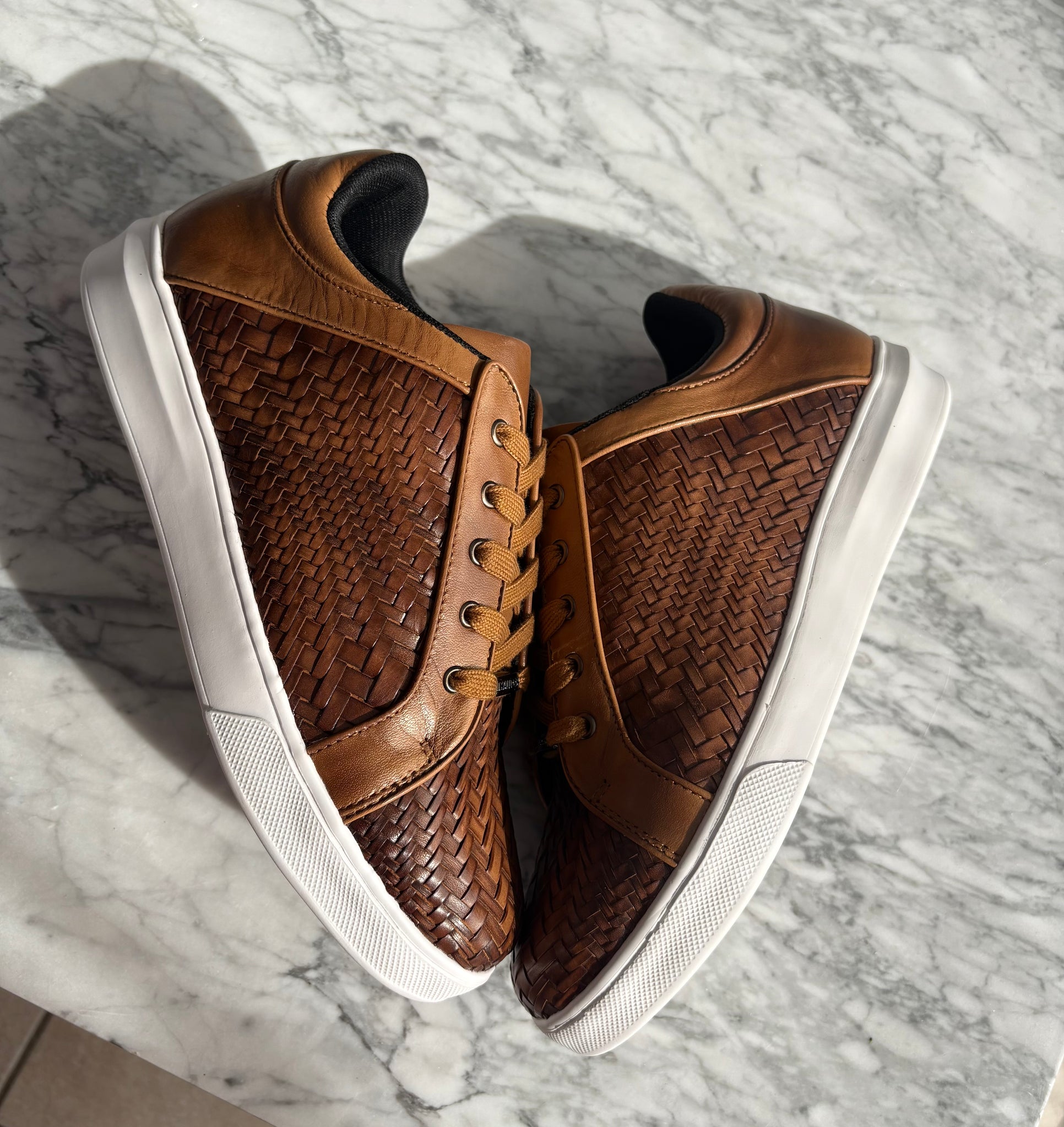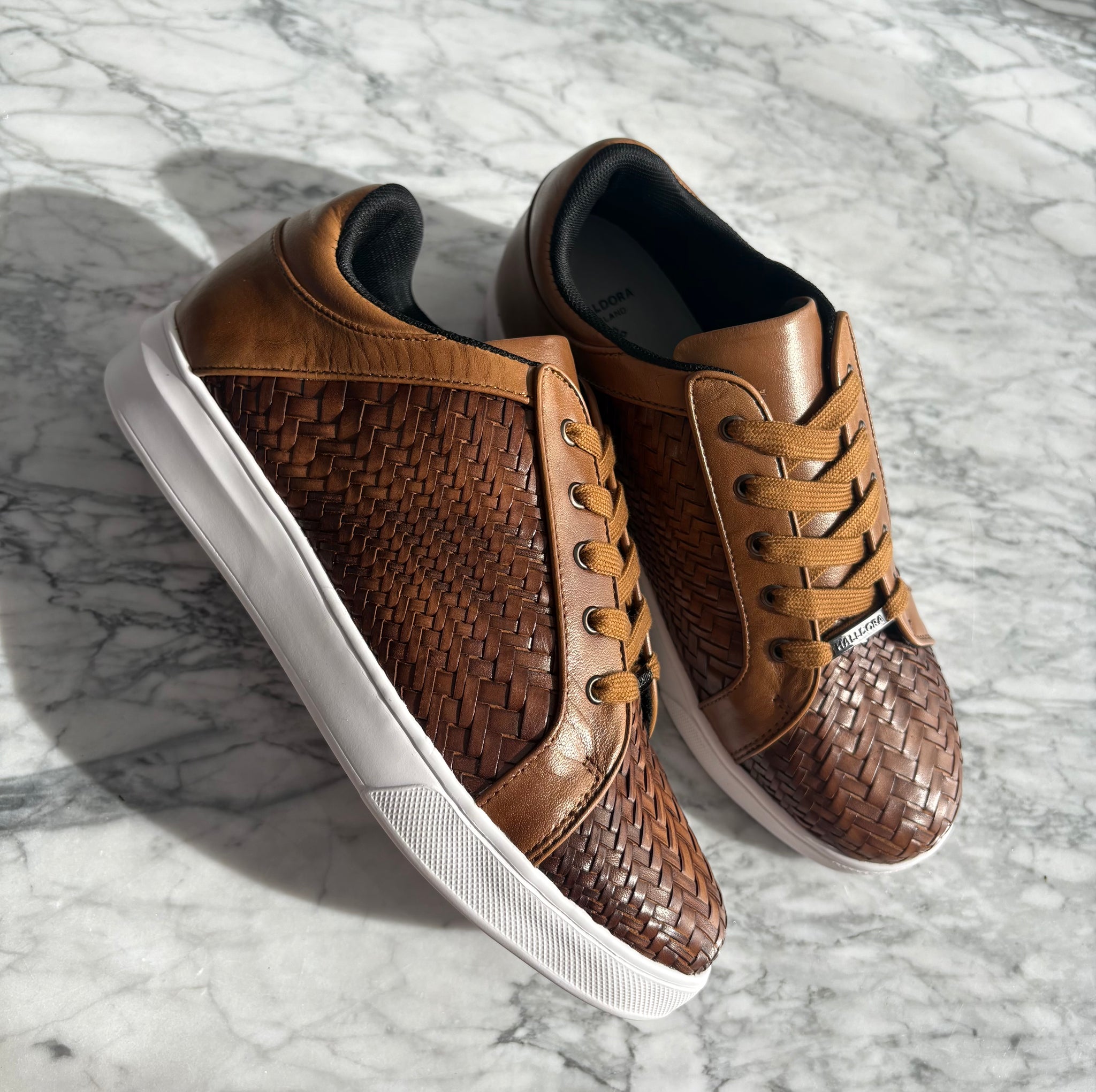 Skórnir Alda eru unnir úr vönduðu mokkabrúnu nautsleðri og bylgjuðu burstuðu mokka ofnu nautsleðri. Nautsleðrið er létt lakkað og því aðeins glansandi sem gefur skónum glæsilegan brag og dregur fram þrívíddaráhrif ofna leðursins innblásið frá öldum hafsins.
